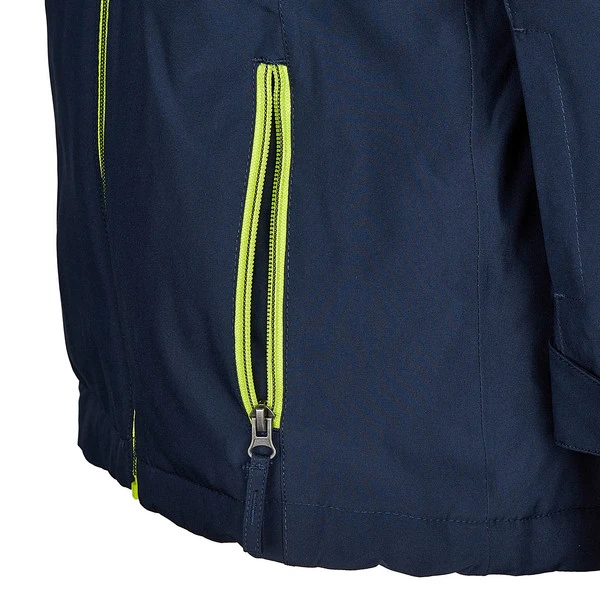 Durch die Kapuze genießen deine Kinder bei ihren Outdoor-Einsätzen auch am Kopf angenehme Wärme. Würde die Kapuze hingegen nur stören, lässt sie sich ruckzuck abtrennen. Der hohe Stehkragen mit weichem Fleece-Einsatz im Innenteil bietet angenehmen Komfort am Hals. Gegen das Eindringen von Kälte sind die Ärmelabschlüsse mit Klett in der Weite regulierbar, während die innen liegenden Stulpen mit Handschuhen gut abschließen. Und auch der Schneefang im Saum optimiert das Wohlgefühl auf Piste, Rodelberg und beim Schneeengel formen.