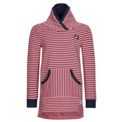 Das Winterkleid ist ruckzuck übergeworfen und sitzt dank seines lockeren Schnitts und seines weichen Baumwolljerseys, das von innen leicht aufgebürstet ist, superbequem. Nachhaltig ist das Material auch, denn die Baumwolle stammt aus kontrolliert biologischem Anbau. Spielen, toben und rennen sind kein Problem – das Ringelkleid bietet den Kleinen volle Bewegungsfreiheit. Der Schalkragen sorgt für einen warmen Hals und rundet die niedliche Optik des Kleides ab. Kalte Hände fühlen sich in der Känguru-Tasche pudelwohl.