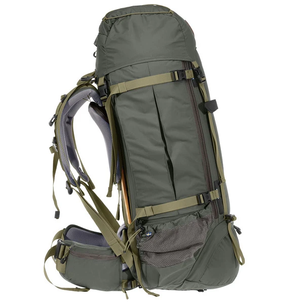 Für einen hohen Komfort in Sachen Equipment-Handhabung wartet der Kajka 75 W mit einer Reihe durchdachter Merkmale auf: Die Frontöffnung des Rucksacks mit Reiß- und Klettverschluss öffnet sehr weit und gibt annähernd den gesamten Innenraum frei. Zusätzlich ist diese Öffnung mit dünnen Stäben ausgerüstet, an denen die Kompressionsriemen ansetzen – dadurch wird eine höchst effektive Kompression erreicht, selbst wenn der Rucksack nicht voll beladen ist!