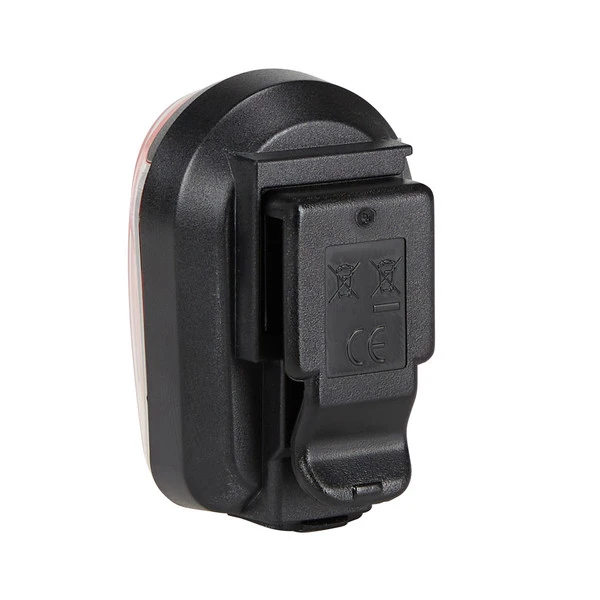 Die Halterung kommt mit zwei Klemmringen; damit lässt sich das Rücklicht an unterschiedlich starken Rohren sicher fixieren. Die Lampe lässt sich so an der Sattelstütze, der Sattelstrebe oder auch am Kinderanhänger befestigen. Der zusätzliche Clip auf der Lampenrückseite ermöglicht es dir, die Lampe an Gepäcktaschen oder an deinem Rucksack zu befestigen.