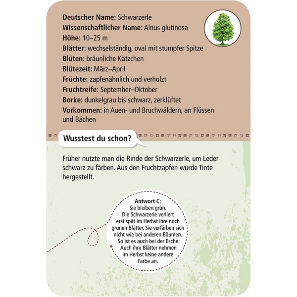 Mit den Karten in dieser Box lassen sich 50 Laub- und Nadelbäume kinderleicht bestimmen: Unterhaltsame Quizfragen, anschauliche Illustrationen, detaillierte Steckbriefe und jede Menge Wissenswertes.