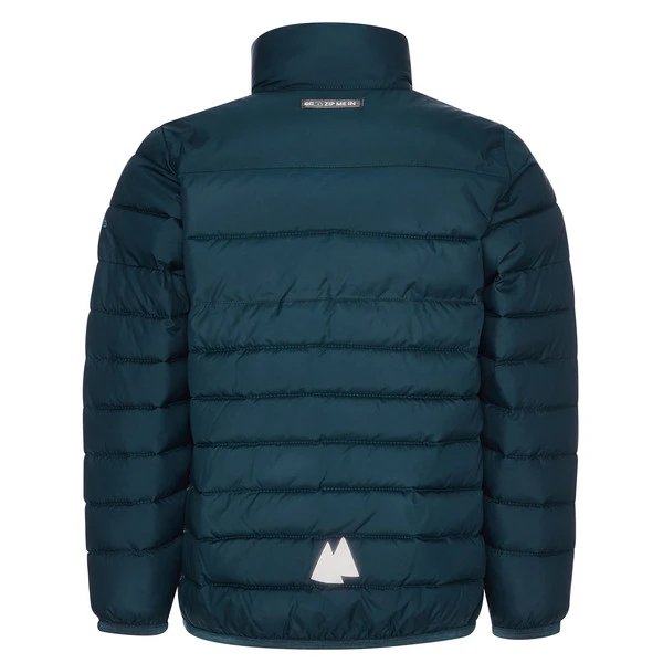 Der wattierte Stehkragen hält auch die Hälse der Lütten schön warm. Die elastischen Einfassungen an den Ärmeln und am Saum sorgen für einen guten Sitz und hindern kalte Luft daran, in die Jacke einzudringen. Auch sehr praktisch in der dunklen Jahreszeit: Das linke Reißverschlussband ist im oberen Teil reflektierend, ebenso wie der Berg-Print am Rücken.