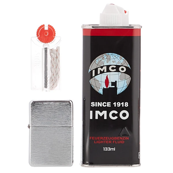 Die unschlagbar preiswerte Komplettlösung, bestehend aus einem klassischen Benzin-Feuerzeug, Ersatzdocht und Ersatz-Zündsteinen im Spender. Inkl. 133 ml Feuerzeugbenzin.